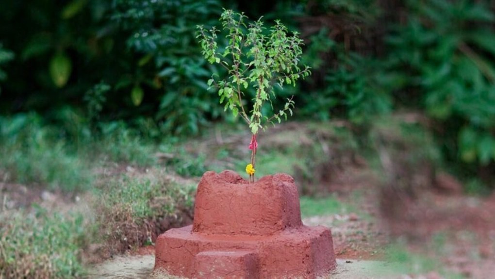 यसरी आँगनको मठमा रोपिएको तुलसीलाई भगवान् विष्णु वा उनको प्रियाको रूपमा पूजा गर्ने परम्परा छ।